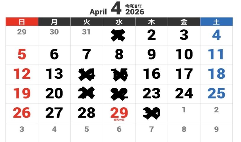 4月の定休日